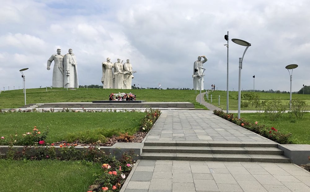 Перед памятником Героям-панфиловцам благоустроена широкая аллея с пышными клумбами, которая поднимается по холму от дороги. Её завершает площадка со звездой из красного гранита, предназначенная для возложения венков.