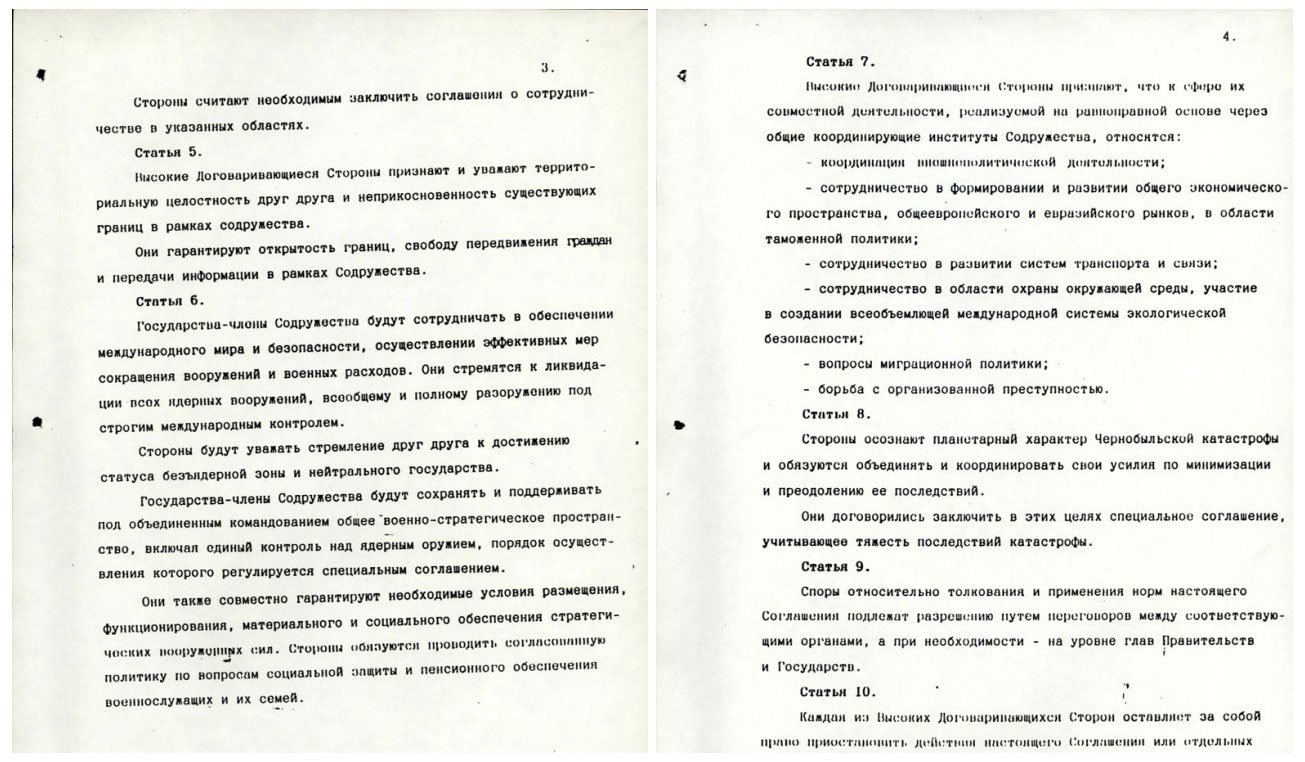 В целях обеспечения международной стратегической стабильности и безопасности будет сохранено объединенное командование военно — стратегическими силами и единый контроль над ядерным оружием; стороны будут уважать стремление друг друга к достижению статуса безъядерного и (или) нейтрального государства.