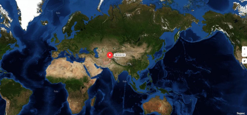 Афганистан на карте занимает пространство северо-восточной окраины Иранского нагорья между 60°30′ и 75° восточной долготы и 20°21′ и 38°30′ северной широты. Высокие вершины и плоскогорья преобладают на 80% территории страны. Горная область Гиндукуш тянется с юго-запада на северо-восток и делит местность на 3 региона – северный равнинный, центральный горный и юго-западные плато. В 160 км севернее столицы Афганистана Кабула Гиндукуш разветвляется на несколько основных хребтов – Паропамиз, Баян, Баба и прочие.