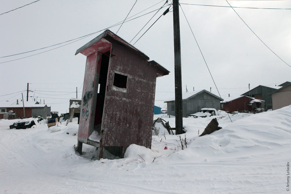 Shishmaref has its own special arctic trash cans. They resemble vats for pouring molten metal, only smaller. With a metal lid. Presumably so that animals can’t get inside to eat the trash.