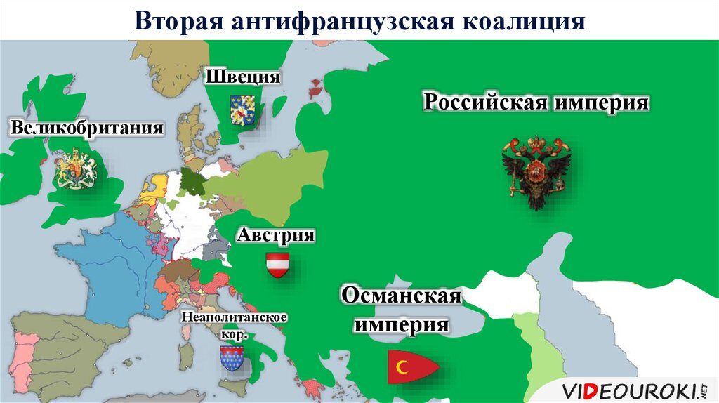 Карта с выделением государств входящих во вторую антифранцузскую коалицию