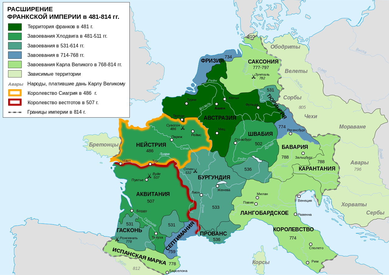 В 711 году они переправились через Гибралтарский пролив на Пиренейский полуостров, где находилось ослабевшее государство вестготов. За несколько лет арабы завоевали почти всю Испанию. Только жители её северной горной части не покорились и продолжали борьбу. Затем арабская конница перешла через Пиренеи и напала на королевство франков. Но в жестоком бою франки отбросили арабов на юг.