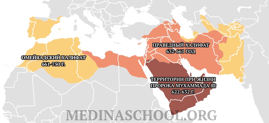 Эти завоевания были успешно продолжены праведным халифом Умаром ибн аль-Хаттабом, и к концу его правления халиф правил уже не только Аравией, но и Месопотамией, Сирией, Вавилонией, частично Ираном, а также Египтом, Триполи и Баркой в Африке.