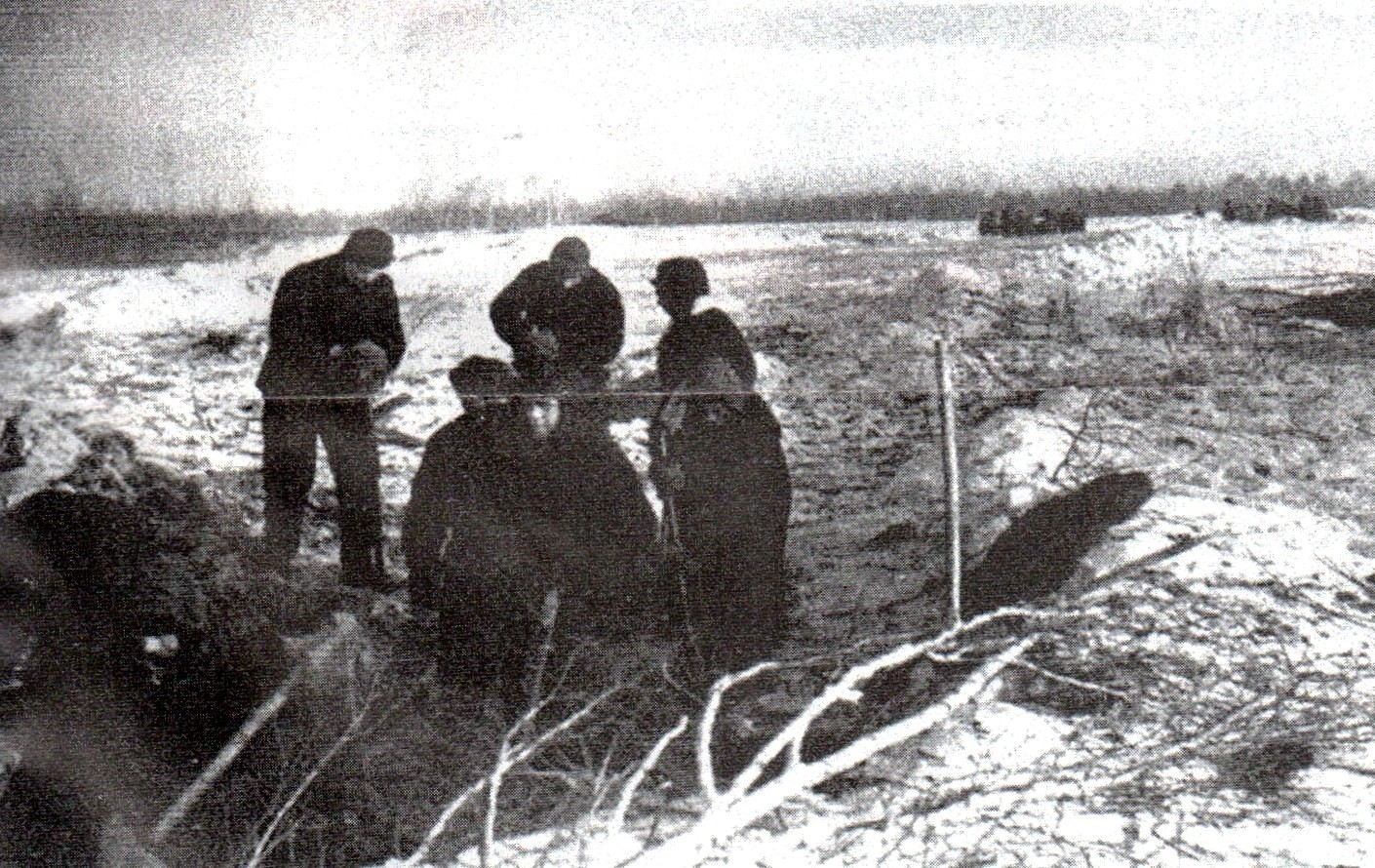 - Первые трудармейцы Бакалстроя на расчистке снега под строительство, март 1942 года