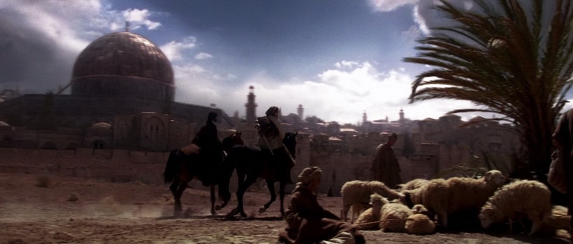 С топографией самого Иерусалима тоже не все хорошо – город показан островом среди пустыни из песчаных дюн, без деревьев, без множества холмов, которые и сегодня окружают старый город – например гора Сион или Масличная гора, без каменоломен. Таким образом, армия Саладина беспрепятственно подводит штурмовые башни к стенам города, что в реальности очень проблематично и что испытала на себе армия Крестоносцев в 1099 году во время предыдущей крупной осады Иерусалима.
