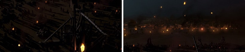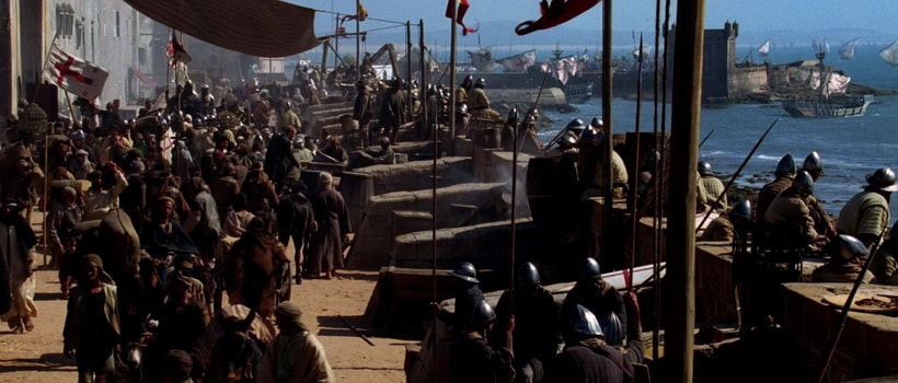 И хотя трудно сказать, куда именно прибыл морем корабль Балиана, опасности морского пути в Святую землю переданы точно. Тоже войска Ричарда Львиное Сердце столкнулось со штормами и понесло потери в пути. Впрочем, с этой сценой связана другая неточность – побережье Израиля не может предложить подобных ландшафтов с пустыней, похожей на Сахару, еще и у берега моря. Впрочем, съемки на натуре велись в Марокко в Африке, где топография своя.