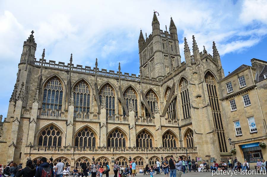 А мы идем дальше. И уже в створе улиц виден шпиль Батского аббатства.