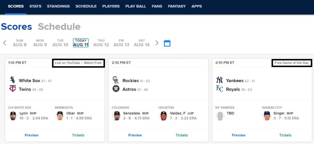 | matchup | time | nat tv | pitching matchup | tickets | ||