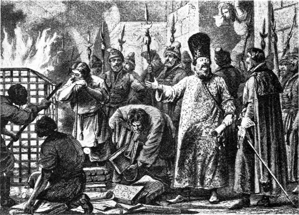 Сожжение местнических книг, 1682, гравюра А. Шарлеманя. (wikipedia.org)