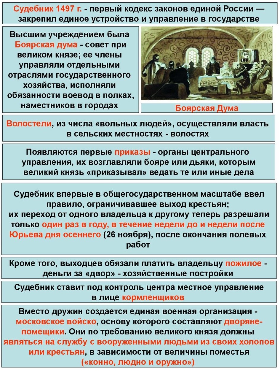 Конспект урока по Истории России «Боярская дума. Судебник 1497 года».