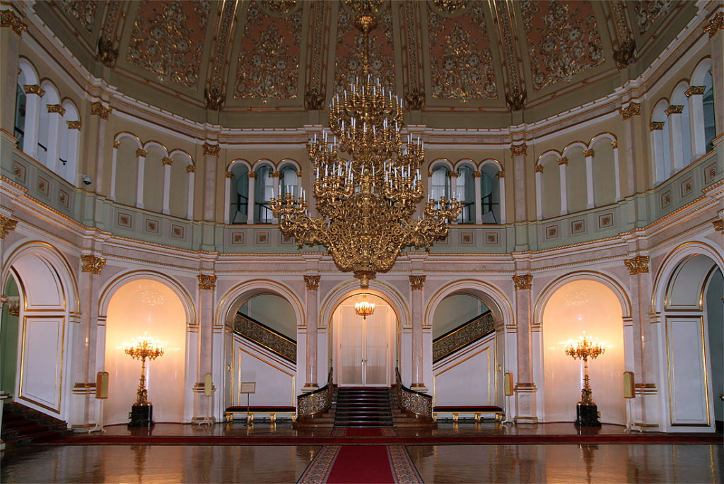 Пожалуй, самый красивый из всех. Залу дали название в честь Ордена святого Георгия Победоносца. Для тех, кто не знает, — это самая высшая награда для офицерского состава российской армии, которая была учреждена в 1769 году. Зал посвящен героям военной славы России. В залах находятся несколько досок из мрамора, на которых запечатлены названия полков, батарей и флотских экипажей. Также высечены фамилии более 10 тысяч кавалеров ордена Георгия Победоносца. Кстати, среди гордо носивших этот орден такие известные личности как Александр Суворов, Федор Ушаков, Михаил Кутузов, Павел Нахимов и Петр Багратион.