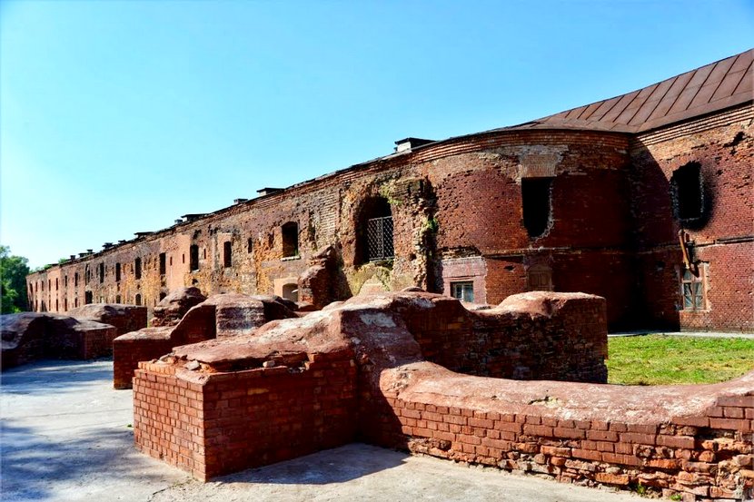 Главное укрепление цитадели, стоящее на острове в междуречье Буга и Мухавеца, представляло собой две двухэтажные казармы с толщиной стен около 2 метров.