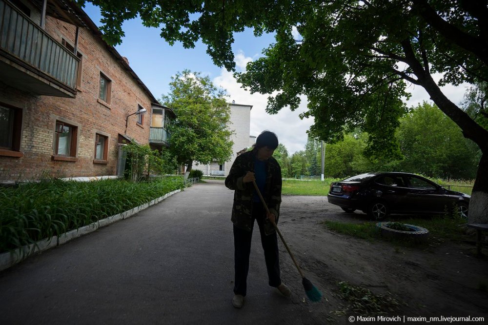 Внешне Чернобыль напоминает обычный провинциальный город. Однако есть одна особенность – в Чернобыле очень чисто и постоянно что-то метут (повышенные требования радиационной безопасности).