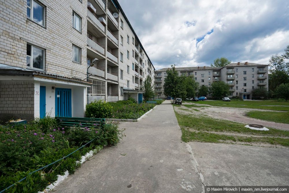 «Общежития размещаются в бывших жилых домах. Там есть вода, свет и отопление. Мебель внутри вся местная, из доаварийных времен, часто привезенная из Припяти. Быт рабочих Чернобыля – довольно скромный. В каждой из комнат небольшой трехкомнатной квартиры живут по два человека. Все вещи – доаварийные, советские, за исключением обязательного фильтра для воды и полиэтиленовой скатерти, на которой не задерживается пыль», — пишет Максим.