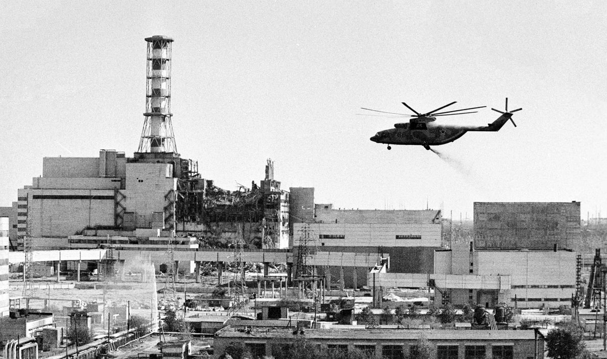 Вертолеты ведут дезактивацию зданий Чернобыльской атомной электростанции после аварии