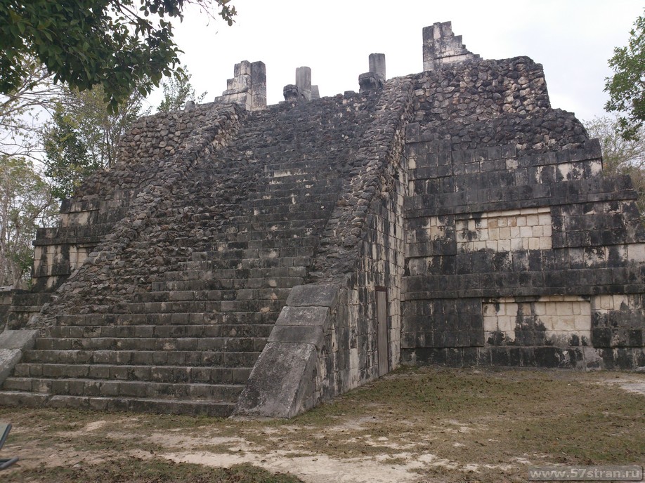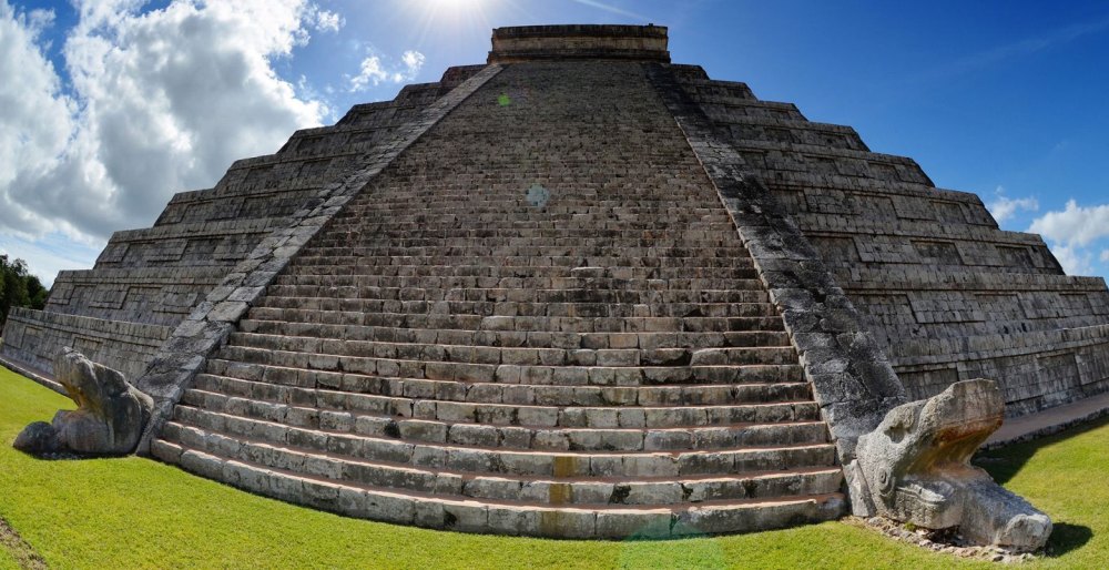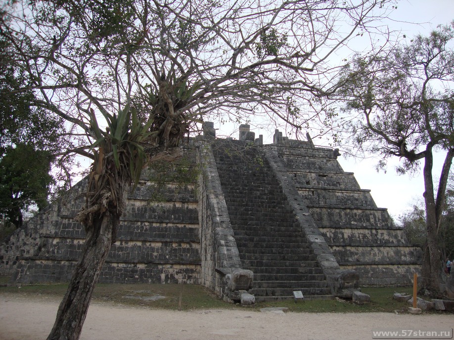 В честь Пернатого Змея, верховного бога, майя соорудили грандиозную пирамиду. Строение расположено на площади 18 га, в основании – квадрат со стороной 55,5 м, высотой 30 м. По центру сторон – широкие крутые лестницы снизу до верха с 91 ступенью.