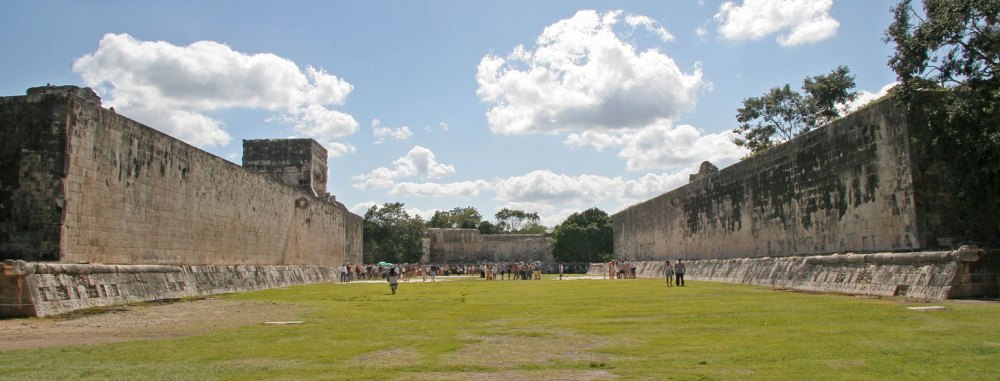 В древнем городе установили 12 площадок для ритуальной игры в мяч. В 864 году появился стадион 135 м в длину и 68 м в ширину, обрамленный 12-метровыми вертикальными стенами с закрепленными на них каменными кольцами на высоте 8 метров. На поле, разделенном пополам, играли две команды, находящиеся каждая на своей половине. Цель игры – пробросить 4-килограммовый каучуковый мяч в каменное кольцо.