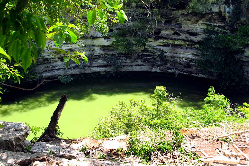 Так называется жертвенный колодец естественного происхождения, расположенный на окраине Чичен-Ицы. Это заполненная водой воронка диаметром до 60 метров. При этом поверхность воды находится примерно в 20 метрах от уровня берега, стены отвесные.