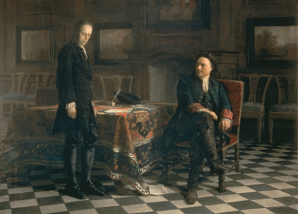 «Петр I допрашивает царевича Алексея Петровича в Петергофе», 1871. Художник Николай Николаевич Ге.