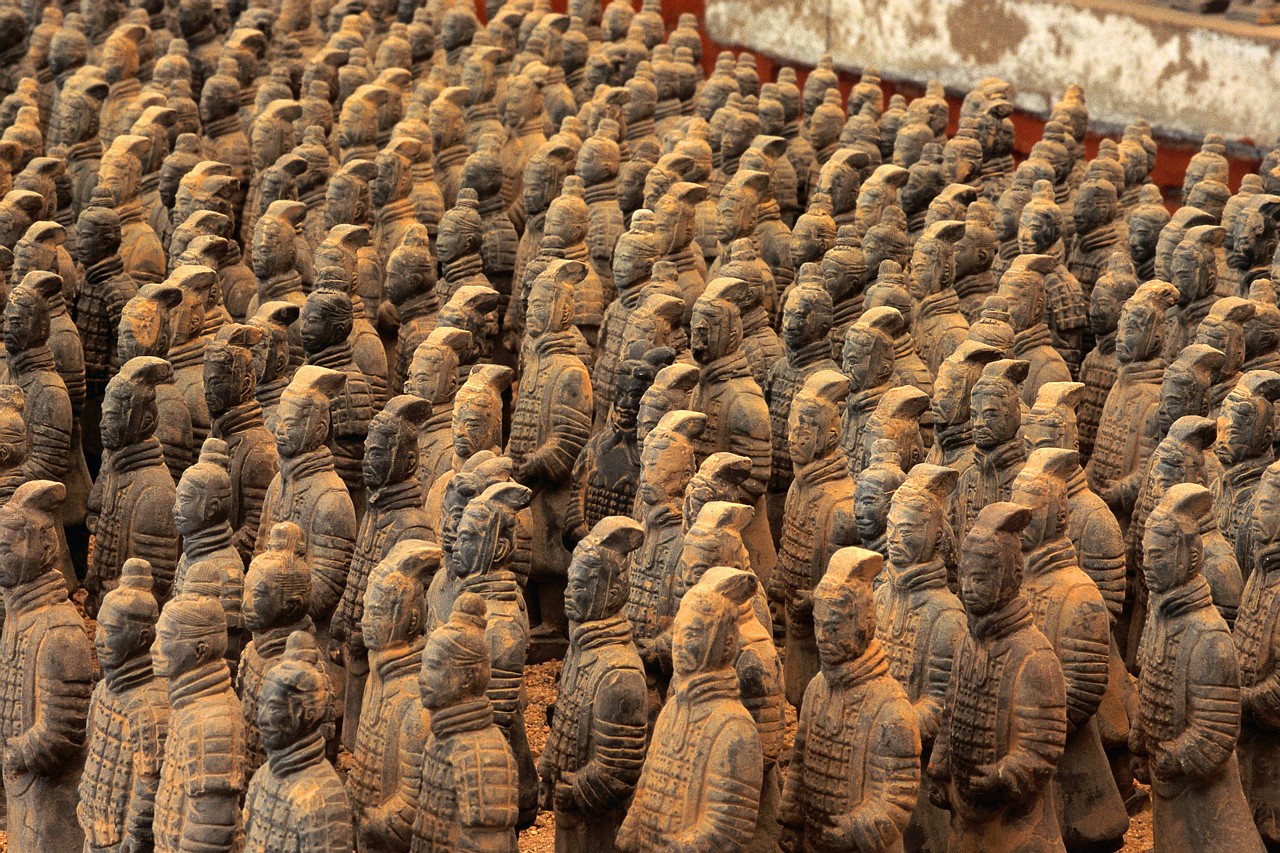 Первоначально Шихуанди собирался захоронить живьём 4000 воинов для охраны богатств своего мавзолея, но такой варварский поступок мог вызвать бурю народного возмущения. Тогда император приказал изготовить глиняную армию, которая будет сопровождать его в загробном мире. Так было создано по меньшей мере 8099 полноразмерных терракотовых статуй китайских воинов и их лошадей.