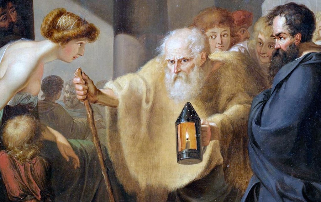 Философ часто прогуливался днем с зажженной «лампой», объясняя свои действия поиском честных людей, которых даже при свете солнца и огня невозможно найти.