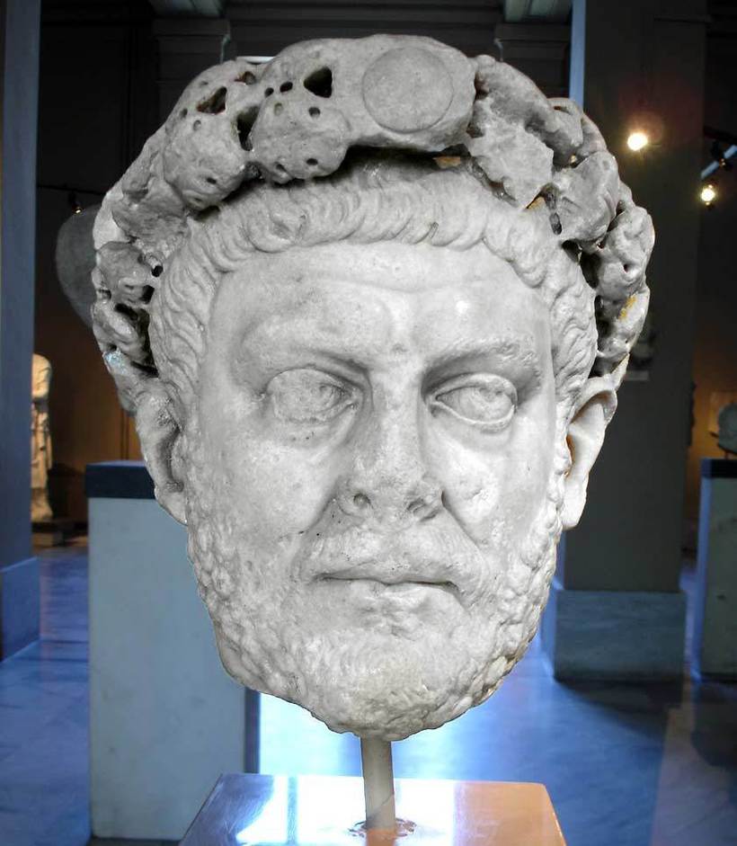 Слева – изящный скульптурный портрет Диоклетиана, возможно, фантазийный. Вероятно, перед нами итальянский мраморный бюст XVII века, портретирующий правителя .