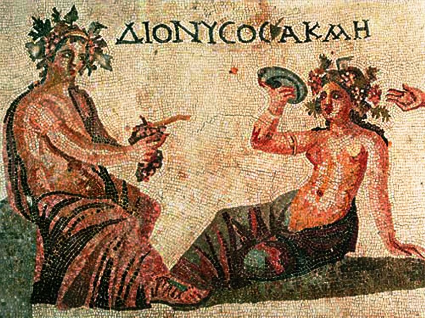 В самом начале, получив вино из рук Диониса, люди устраивали шумные праздники, на которых главными были смех и радость. Вино веселило душу, придавало сил и поднимало настроение. Но постепенно простое веселье стало необузданным. Алкоголь превращал ночные празднества в честь бога виноделия в страшные зрелища. Пьянство доводило греков до того, что они облачались в звериные шкуры, поедали сырое мясо и при этом славили имя Диониса. Расслабленность и раскрепощение превращалось в безумство. Пьянство вело к тому, что люди переставали слушать свой разум и часто танцы заканчивались кровавым зрелищем и вакханалией.