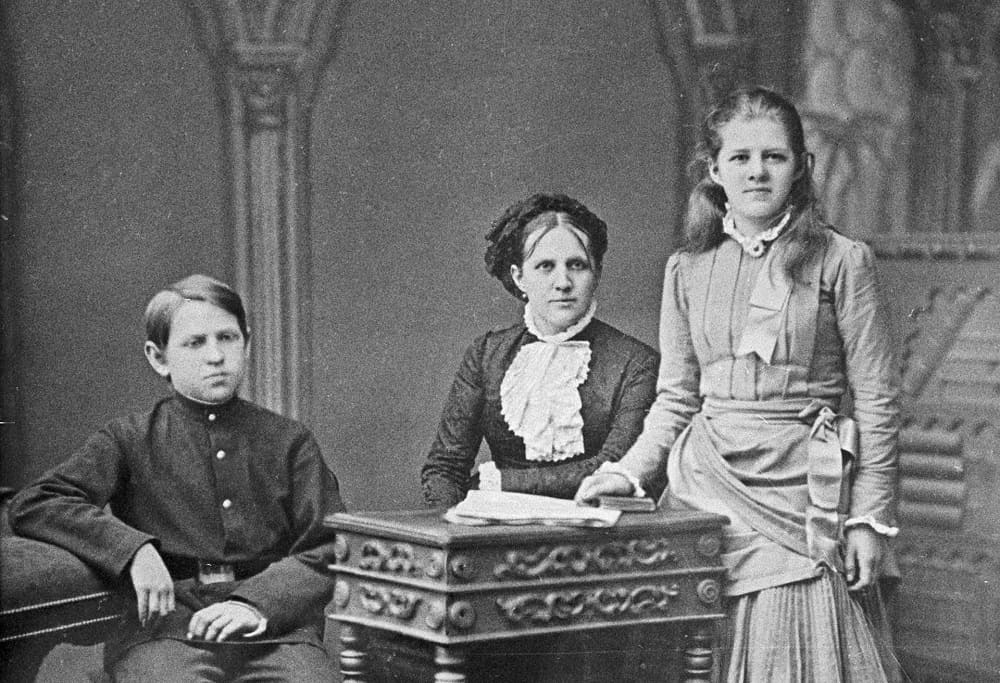 Вторая жена Фёдора Михайловича Достоевского Анна Григорьевна, с дочерью Любовью и сыном Федором, 1883 год / И. Грюннер