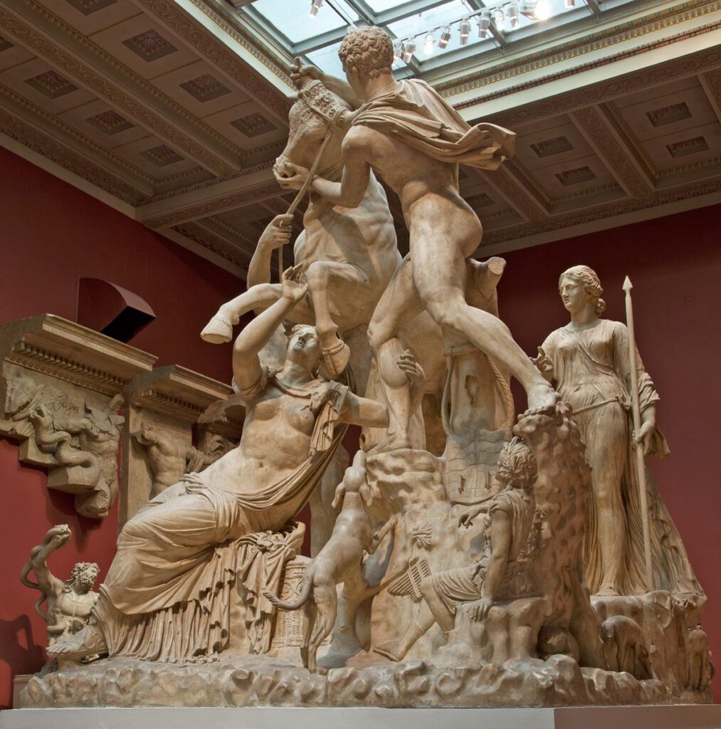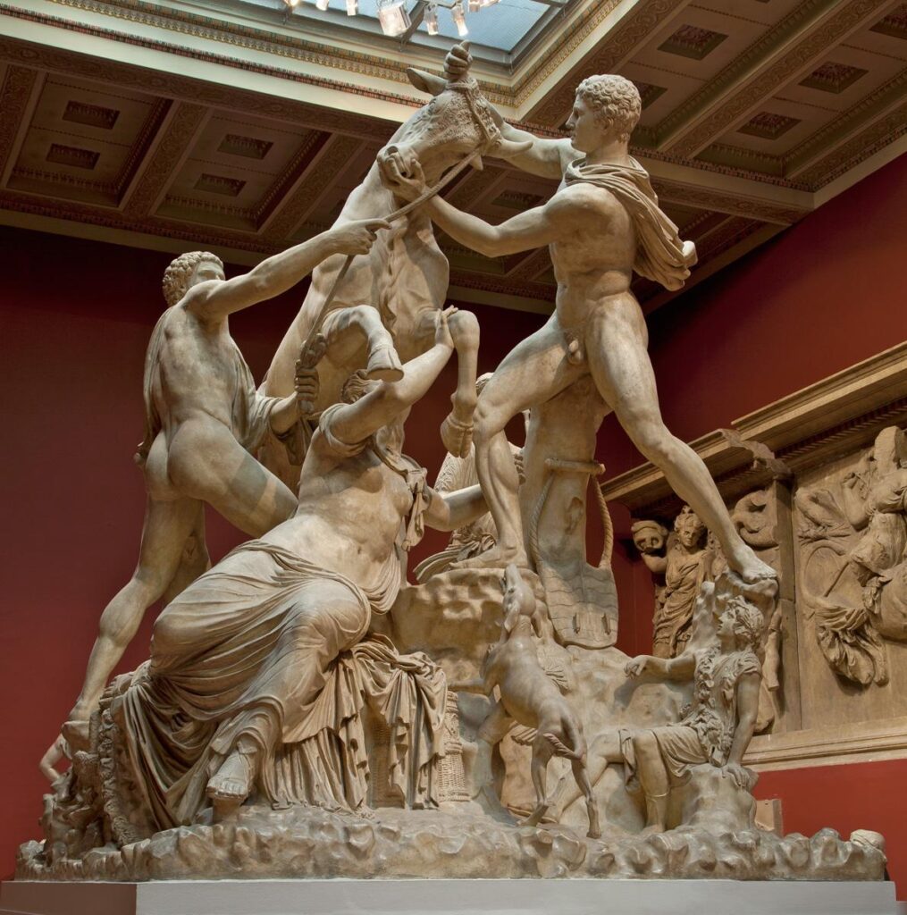 Эта древнегреческая скульптура изображает жестокую смерть Дирки. История взята из греческой мифологии.