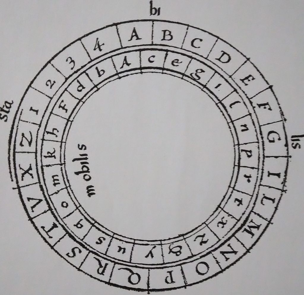 Около 1466 года итальянский ученый Леон Альберти изобретает шифровальный диск, состоящий из двух частей: внешней и внутренней. На неподвижном внешнем диске был написан алфавит и цифры. Внутренний подвижный диск также содержал буквы и цифры в другом порядке и являлся ключом к шифру. Для шифрования нужно было найти нужную букву текста на внешнем диске и заменить ее на букву на внутреннем, стоящую под ней. После этого внутренний диск сдвигался, и новая буква зашифровывалась уже с новой позиции. Таким образом, шифр Альберти стал одним из первых шифров многоалфавитной замены, основанных на принципе комбинаторики. Кроме того, Леон Альберти написал одну из первых научных работ по криптографии − «Трактат о шифрах».