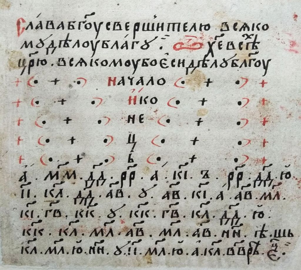 Тайнопись XVI века, в основе которой числовые значения церковнославянских букв