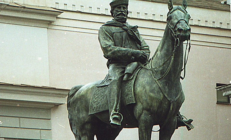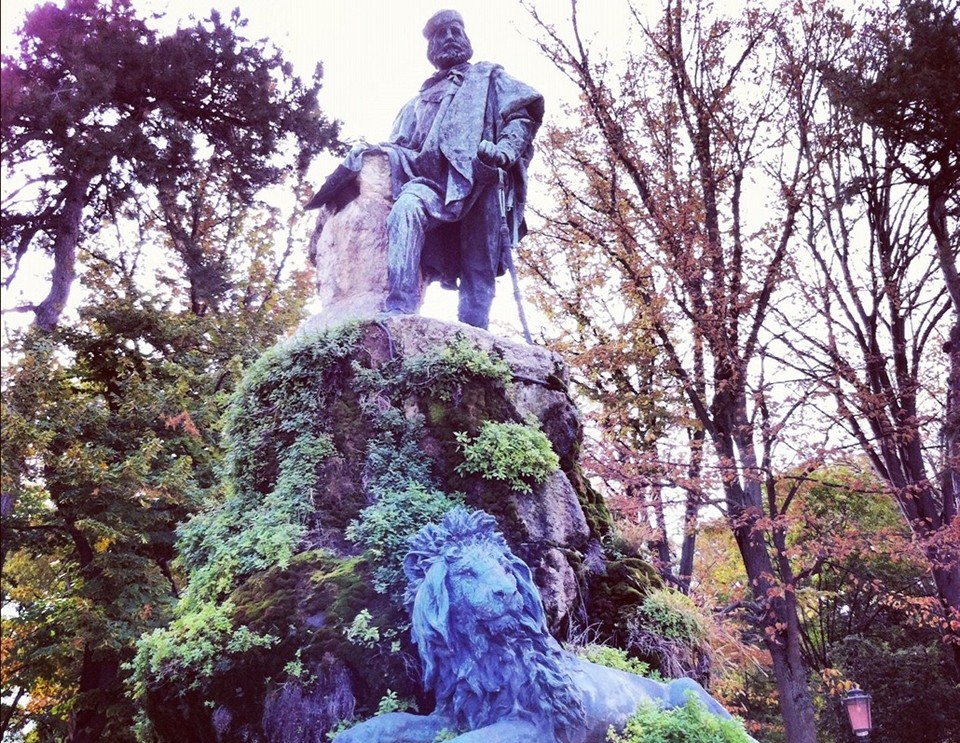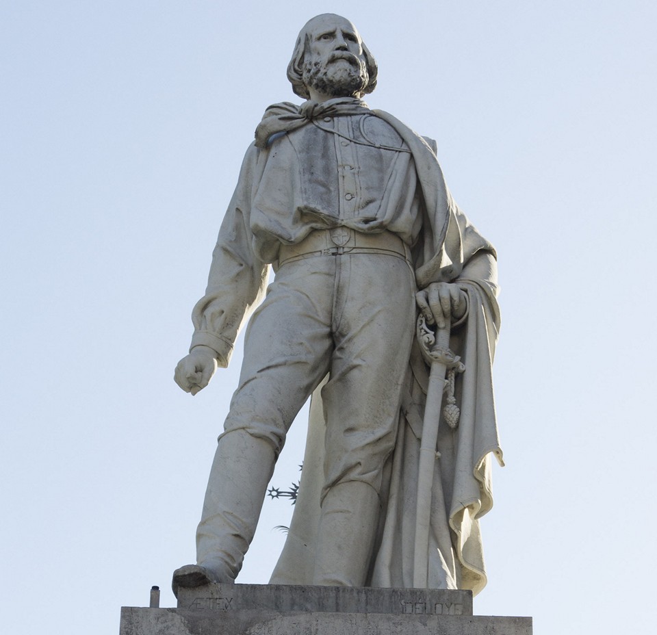 В 1895 году скульптор Эмилио Галлори (Emilio Gallori) завершил работу над скульптурой Джузеппе Гарибальди на коне. Памятник установили на высоком пьедестале на площади Гарибальди (Piazzale Garibaldi) в Риме. Площадь находится на самом высоком холме Рима – Яникул (Mons Janiculus) и представляет собой одну из лучших смотровых площадок города – там всегда много местных и влюбленных.Немного ниже на холме воздвигнут памятник Аните Гарибальди, его первой жене. Женщина изображена в седле и с младенцем на руках.