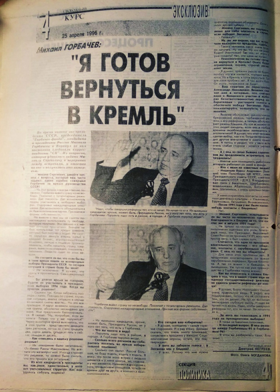 В 1996 году Михаил Горбачев выставил свою кандидатуру на пост Президента России, но набрал меньше одного процента. Позже, в 2001 году он становится лидером социал-демократической партии.