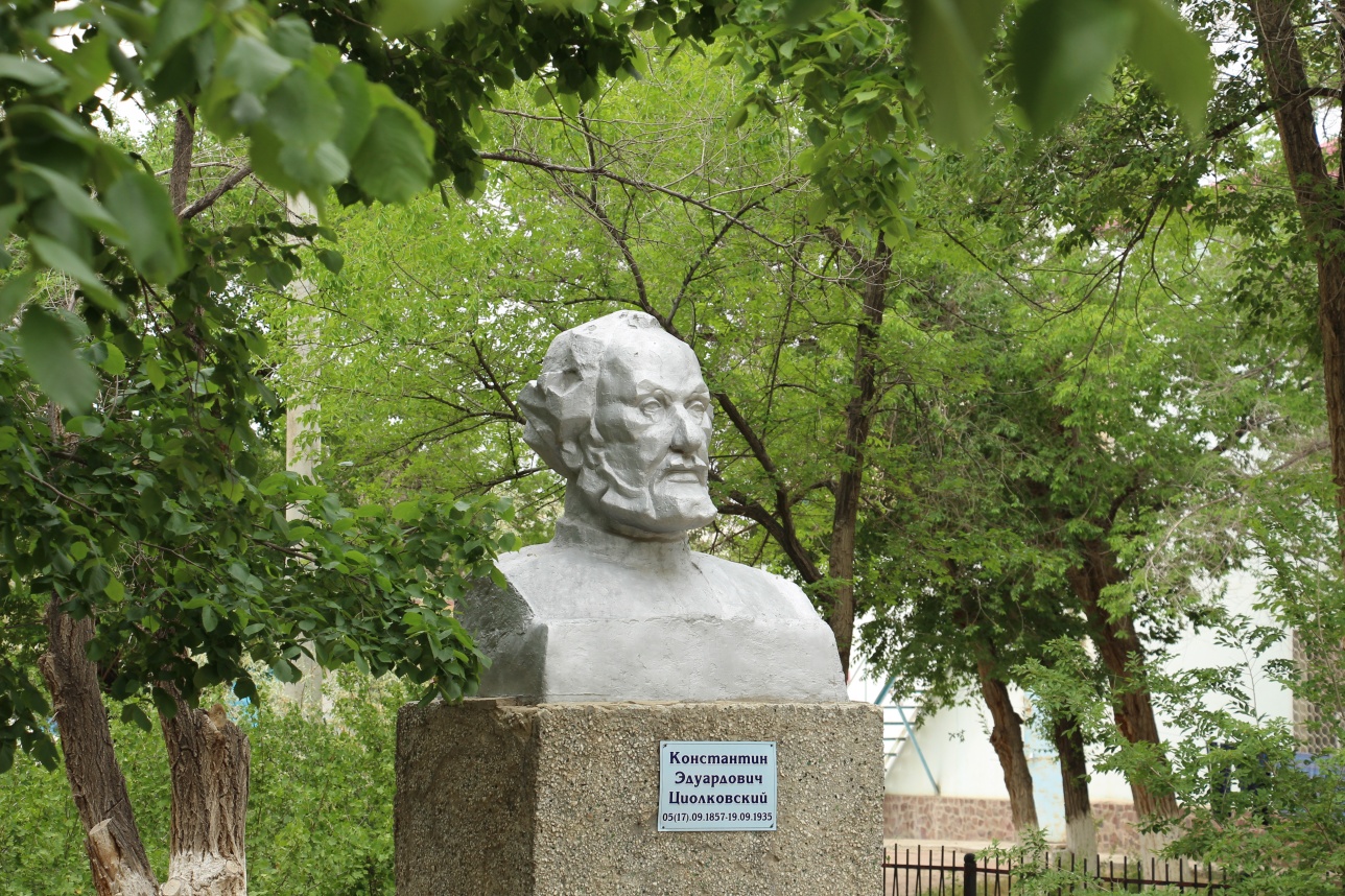 Бюст Циолковского во дворе казахской школы в Байконуре / Фото Informburo.kz
