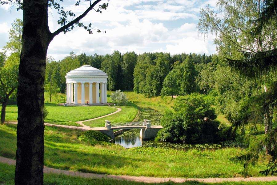 Среди известных объектов парка: Храм Дружбы – ротонда, которую подарил император Павел I своей матери, Колоннада Аполлона, Розовый павильон – любимое место отдыха Марии Федоровны, жены императора. Здесь также установлены скульптуры, мост над рекой, и другие интересные сооружения.