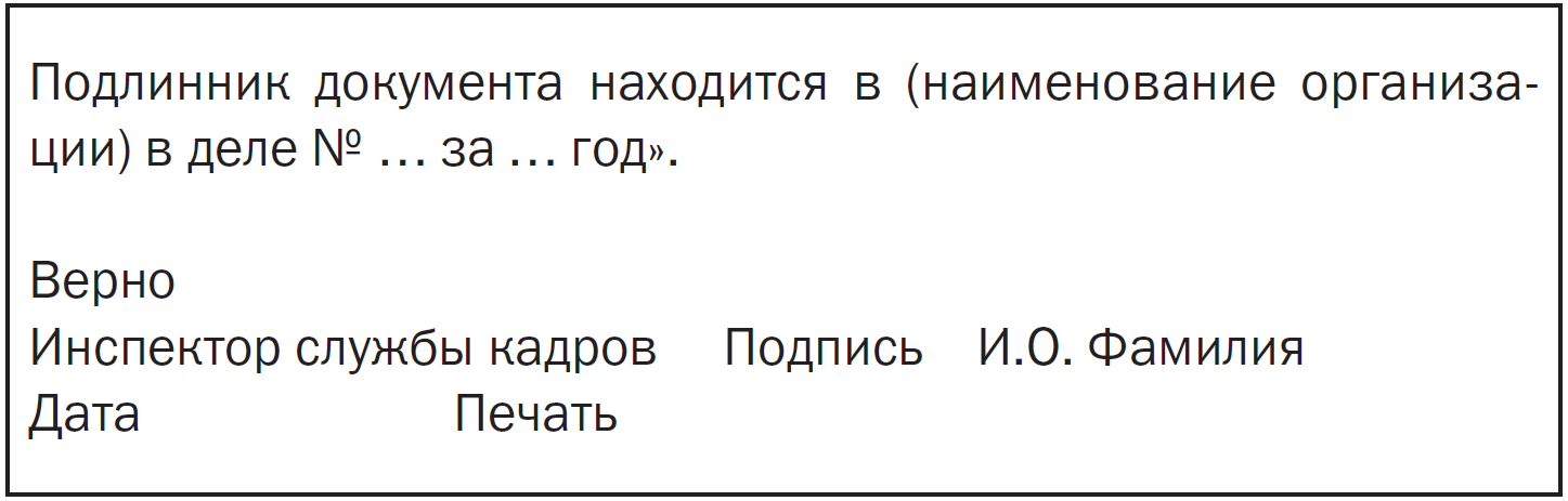 ■ Отметку о заверении копии документа дополняем записью о месте хранения оригинала. В правила оформления отметки о заверении копии включены новые положения: если копия выдается для представления в другую организацию, отметка о заверении копии дополняется записью о месте хранения документа, с которого была изготовлена копия, и заверяется печатью организации: