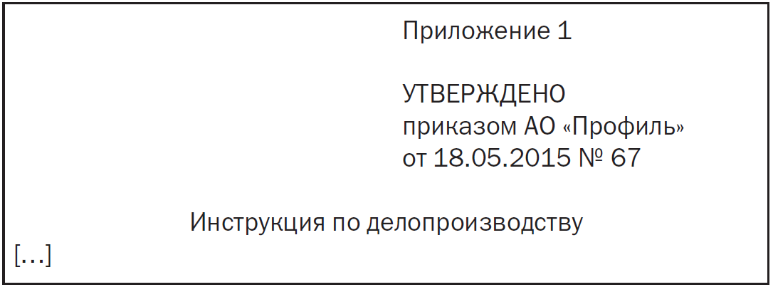 ■ На первом листе документа-приложения ставим отметку о приложении и гриф утверждения. Уточнены правила оформления отметки о приложении на приложениях к распорядительным документам (постановлениям, решениям, приказам, распоряжениям), если приложением является нормативный правовой акт или иной документ, утверждаемый данным распорядительным документом.