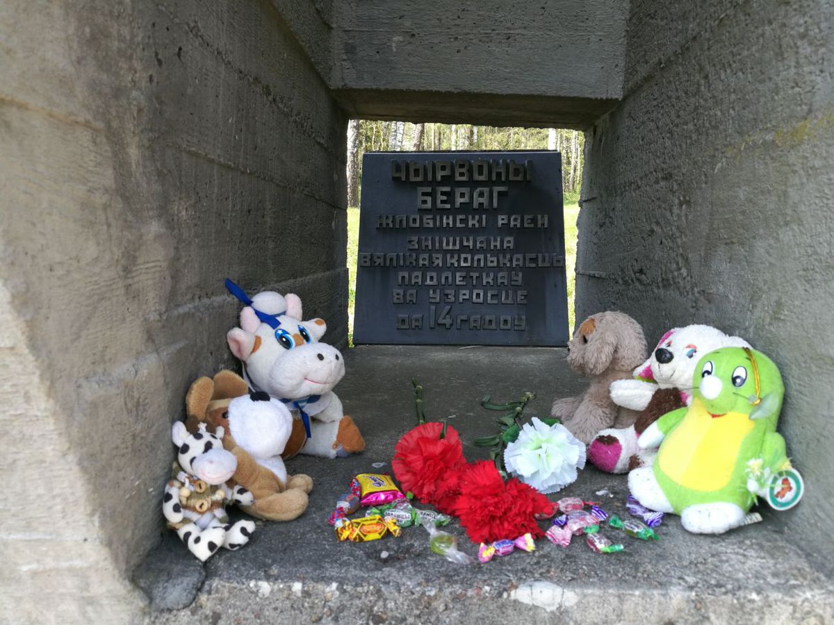 Вторая ниша посвящена трагедии в деревне Красный Берег. Раньше ее так называли за роскошные яблоневые сады — говорят, осенью, когда созревали яблоки, берег действительно казался красным. А в годы войны люди стали ее называть Кровавым Берегом. Дело в том, что фашисты устроили здесь детский донорский лагерь.