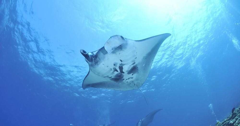 Этот величественный скат, прозванный «морским дьяволом», может иметь размах «крыльев» до восьми метров. Более того, манта легко может выпрыгивать из воды на несколько метров.