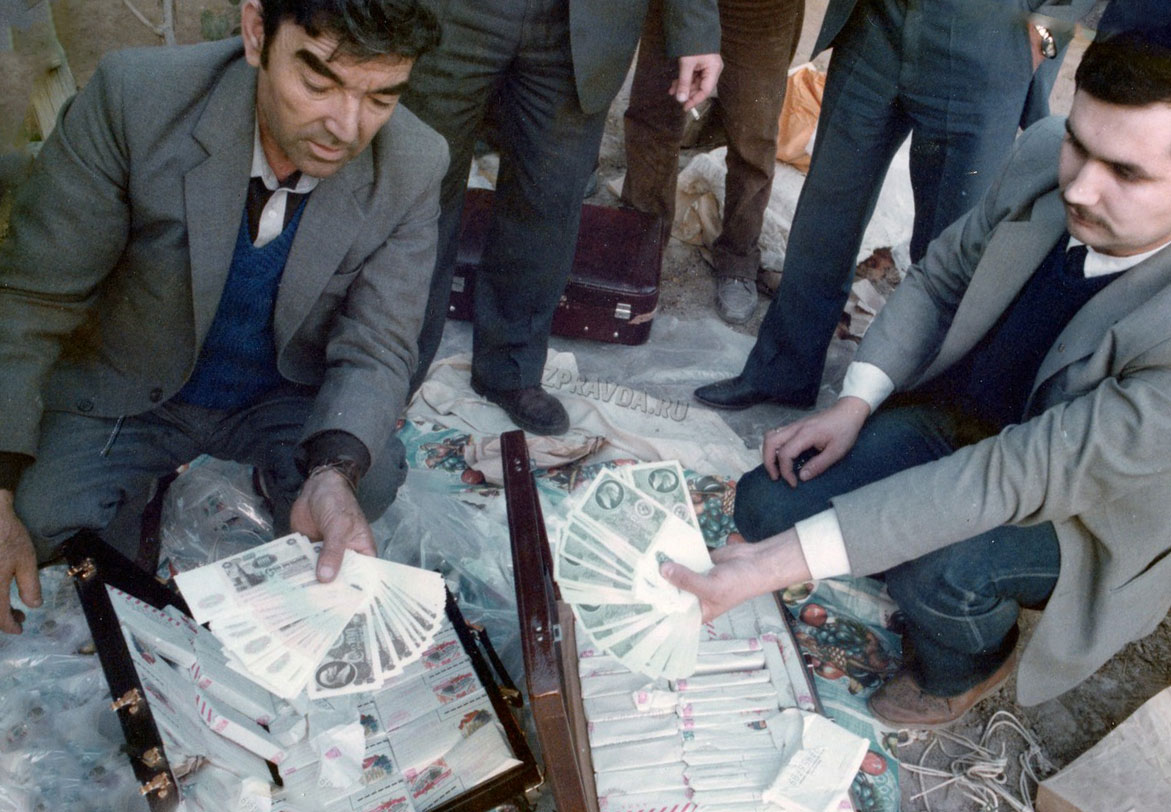 Первое антикоррупционное дело начали уже 27 апреля 1983 года, когда при попытке дать взятку в размере 1 тысяч рублей был задержан начальник ОБХСС Бухарской области Ахат Музаффаров. Он сразу начал давать показания после проведенного в его доме обыска. Оперативники изъяли из домашнего сейфа Музаффарова 1 млн рублей и еще золотые царские монеты общей стоимостью 1,5 млн рублей. Плюс множество ювелирных украшений.