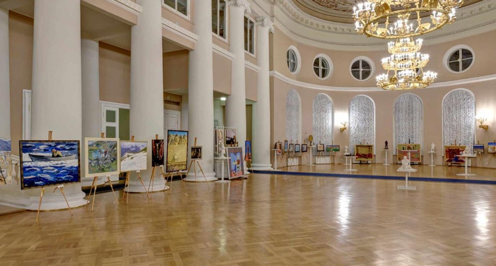 Камины, фигурные печи, причудливая роспись плафонов и стен создают неповторимый колорит огромного зала.