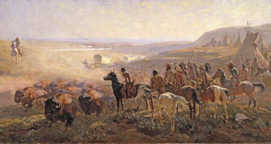 Американские власти в ходе так называемых земельных гонок раздавали своим гражданам территории, ранее переданные «цивилизованным» народам Оклахомы. Войска подавляли сопротивление индейцев лакота, арапахо, чайенов, команчей и апачей. Солдаты убивали в индейских стойбищах стариков, женщин и детей. Коренные жители прерий нанесли военным несколько поражений и добились перемирия. Однако после строительства Первой трансконтинентальной железной дороги и уничтожения бизонов, служивших источником пропитания для индейцев Великих равнин, сопротивление было подавлено.