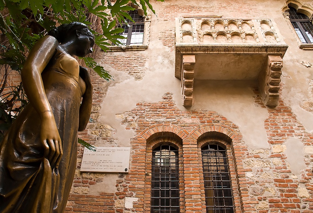 Легенда гласит, что героиня трагедии Шекспира Джульетта проживала в итальянском городке Верона, на улице Капелло в пятиэтажном доме из кирпича / enjourney.ru