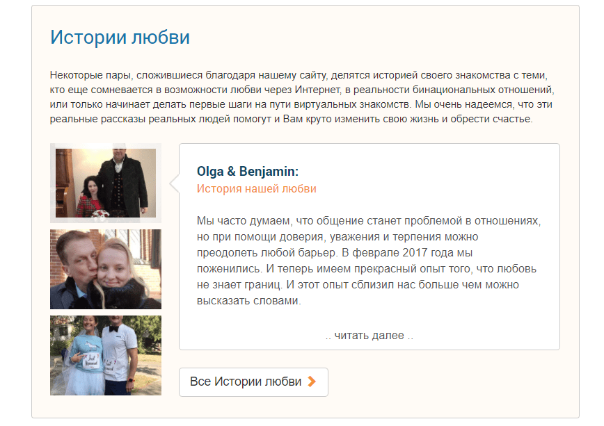 Больше историй есть на странице «Истории любви». Своим опытом уже поделились более 50 интернациональных пар.