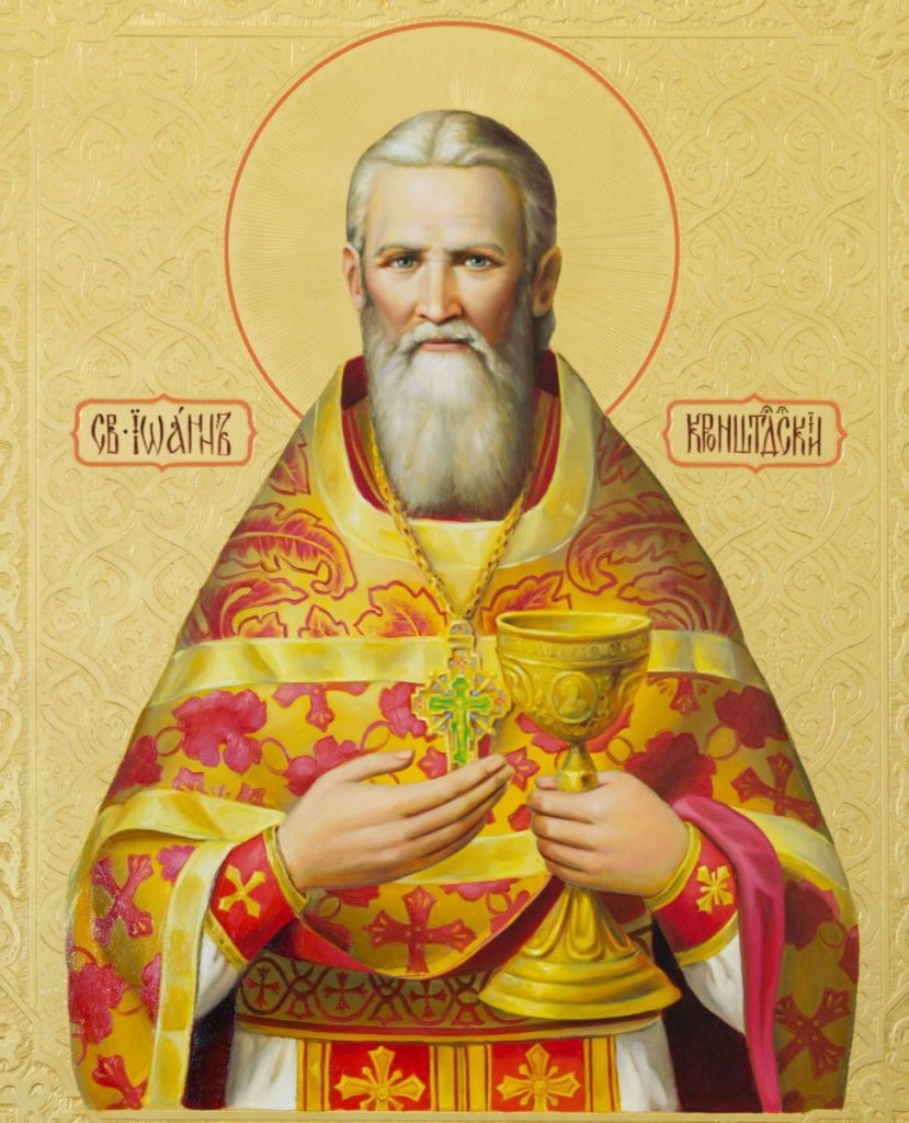 Иоанн Ильич Сергиев (Иоанн Кронштадтский) был православным священником , женат и отцом семейства. Он провел все свое служение в Кронштадте , пригороде Санкт-Петербурга, с простотой и добротой. Его церковь канонизировала его в 1964 году ».