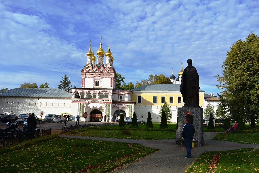 Вид на надвратную церковь Иосифо-Волоцкого монастыря и памятник преподобному Иосифу