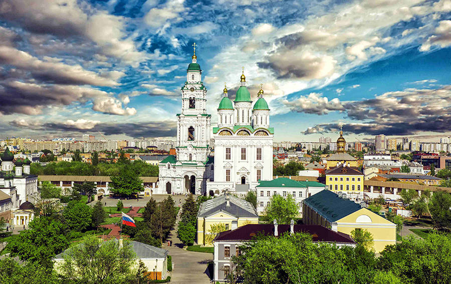 Создание самого южного из русских кремлей заняло около 40 лет. Для строительства использовались кирпичи, оставшиеся от обращенного в руины города Старый Сарай – столицы Золотой Орды. Первоначально крепость украшали 8 башен, 7 из которых сохранились и по сей день. Помимо захватывающей панорамы, открывающейся со смотровой площадки, Астраханский кремль может похвастаться двумя роскошными соборами — Троицким и Успенским, а также уникальной 80-метровой колокольней, ставшей символом города. За годы своего существования она перестраивалась несколько раз. Первая звонница, воздвигнутая в начале XVIII века, дала осадку и покрылась трещинами, после чего ее пришлось демонтировать. В XIX веке на ее месте появилась новая колокольня, которая через несколько лет стала походить на Пизанскую башню, накренившись в сторону. И только третья звонница стоит уже более века, хотя и она дала просадку грунта из-за своего немалого веса.