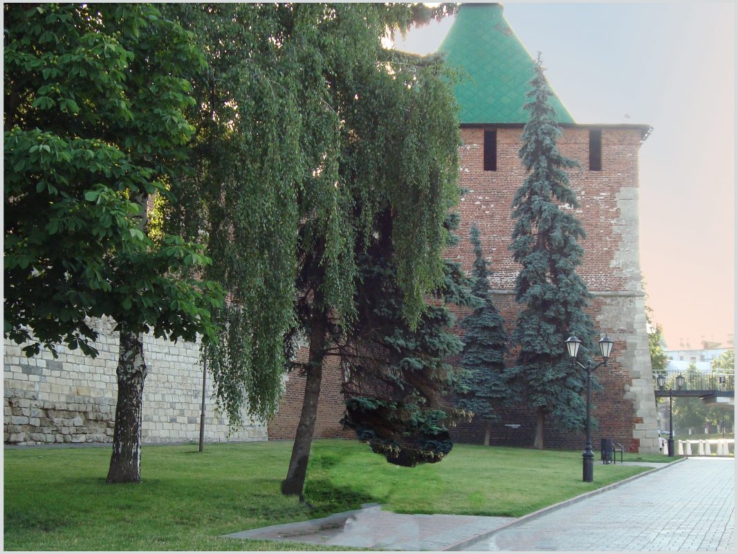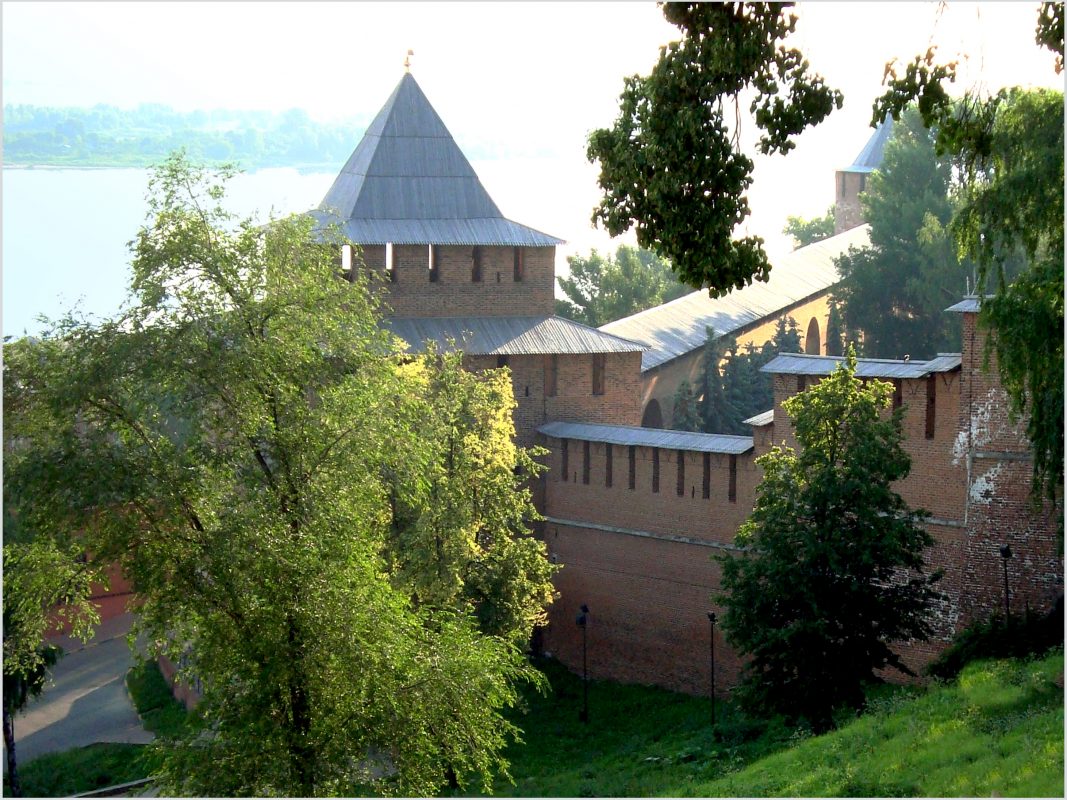 А сам Нижний, как и многие другие, пограничные в то время, города прошел путь от деревянно-земляного детинца до мощной цитадели, построенной из красного кирпича. К 1516 году это было полноценное оборонительное сооружение с двумя километрами стен высотой до 15 м, 13 башнями, окруженное рвом глубиной 2,5-4 м и шириной -25-40 м., с постоянным воинским гарнизоном. Кремль неоднократно подвергался серьезным нападениям и осадам, но не разу не был сдан противнику. К концу XVII века он утратил свое оборонительное значение. Долгие годы он находился в заброшенном и бесхозном состоянии. Сохранился этот памятник архитектуры и фортификации благодаря императору Николаю I, который, посетив город в 1834 г., потребовал реставрировать кремль. Проведенные, под руководством архитектора и реставратора В.Н.Султанова работы способствовали тому, что приоритеты для Нижегородского кремля сместились в сторону активного участия в культурной жизни города. На сегодняшний день здесь размещаются мэрия и администрация губернатора. Территория кремля открыта для посещения всеми желающими с 6.00 до 22.00,