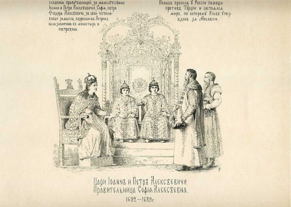 Несмотря на то, что царями братья стали в 1682 году, их правление было номинальным. По факту управляла государством Софья Алексеевна, чему сам Иван не препятствовал. Однако к 1689 году Пётр становится старше и уже в полной мере осознаёт свои права. Между ним и Софьей начинается борьба.