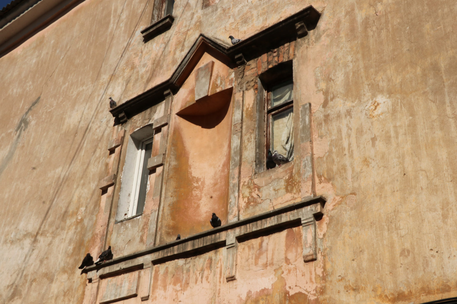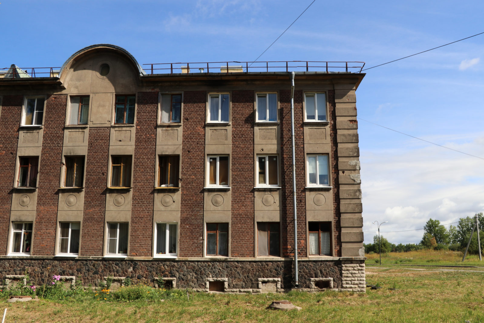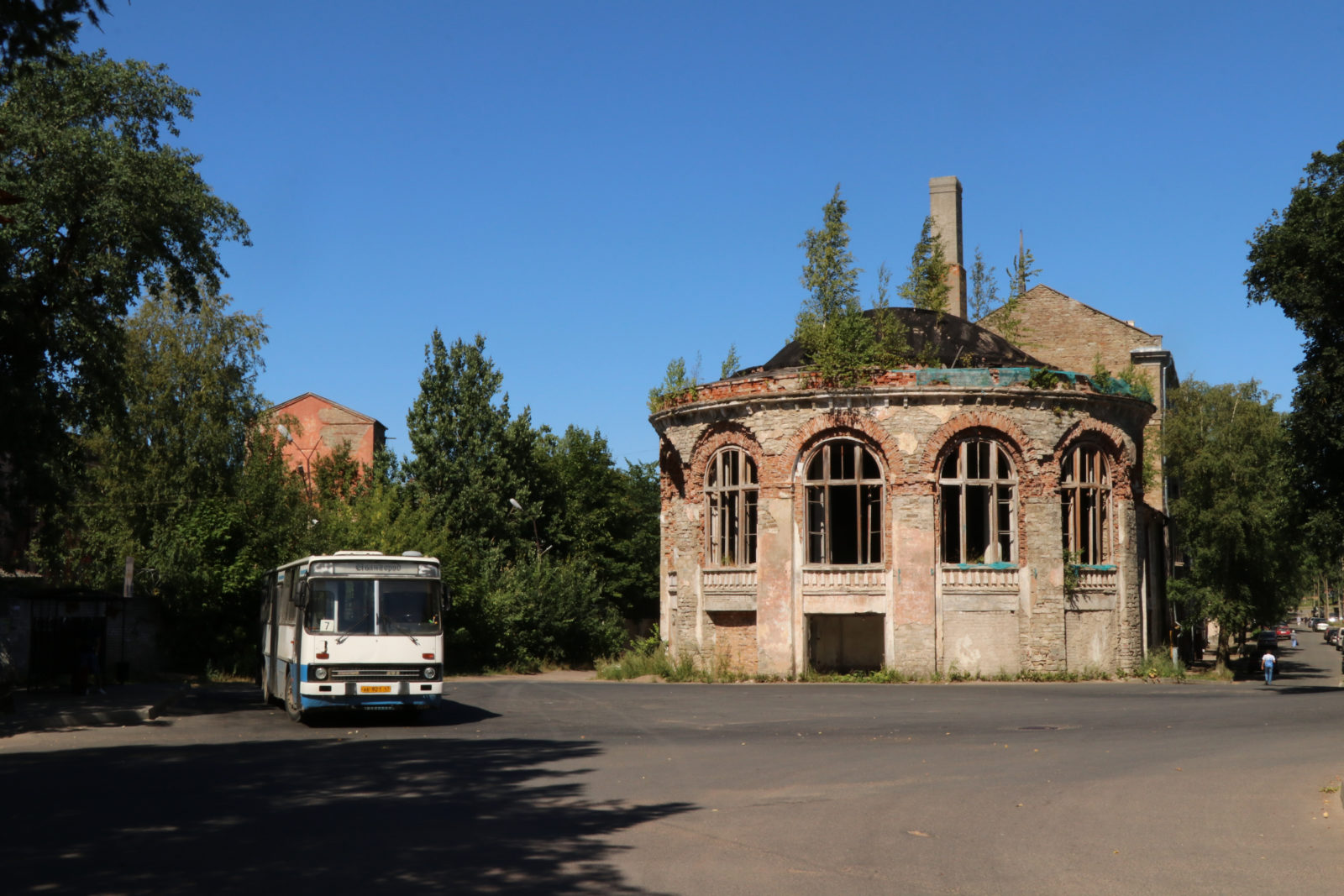 Полукруглое здание на пересечении улиц Текстильщиков и Пасторова — некогда столовая для рабочих. Сейчас здание заброшено и полуразрушено.
